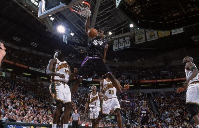 今天,首要談的,是 2001, 2002 年帶領國王隊,成為西區強權的核心 #4 Chris Webber。6 呎 10 吋(208 cm ),1993 年被魔術隊以狀元籤選中,隨即被交易往金州勇士隊。大學時期,和 Juwan Howard、Rose 是密西根大學著名的密西根五虎。